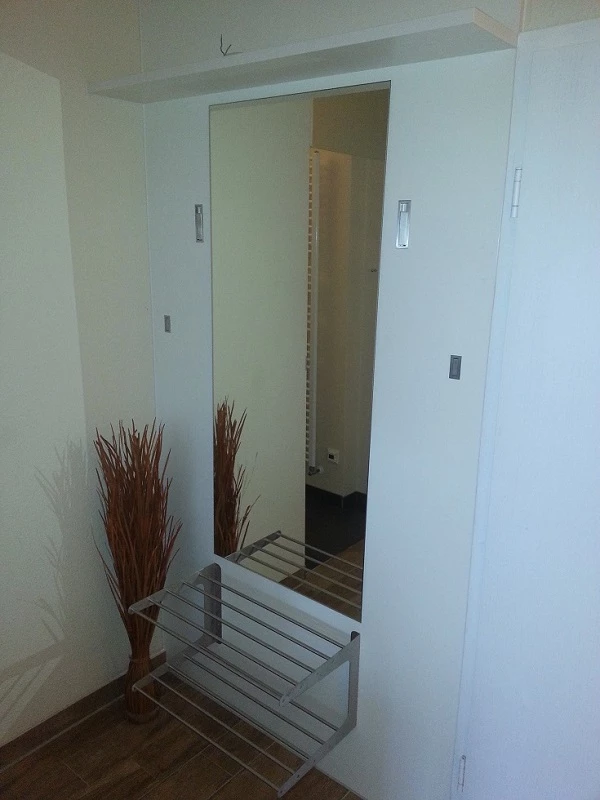 Separate Abtrennung zum Wohnbereich mit  großem Wandschrank, Garderobe mit Spiegel